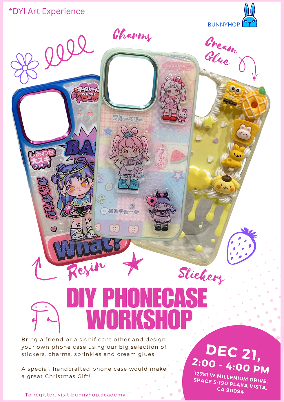 Make fun and creative decoden art projects using faux whipped cream glue, charms, beads, and bling to decorate and personalize phone cases, phone/bag charms, mirrors, frames, and more. Sweet, visually striking, and totally unique — it’s the cutest form of self-expression! All ages and walk-ins are welcome. We can't wait to see what you create with us!